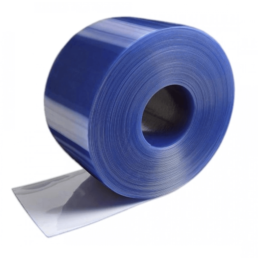 PVC-ridåer, standard, ljusblå (200×2 mm) — lämpliga för inomhusbruk och arbetsområden.